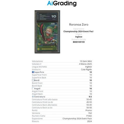 One Piece Card Game Roronoa Zoro P-042 AiGrading Voto 10