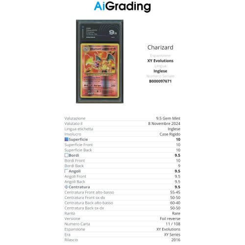 Pokémon Charizard EVO 11 AiGrading Voto 9,5