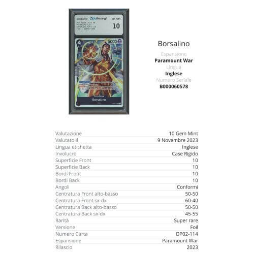 One Piece Borsalino OP02-114 V.1 Super Rara AiGrading Voto 10
