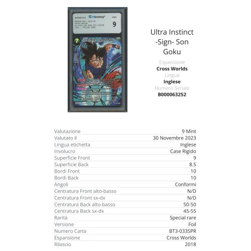 Dragon Ball Super Cross Worlds Ultra Instinct -Sign- Son Goku AiGrading Voto 9