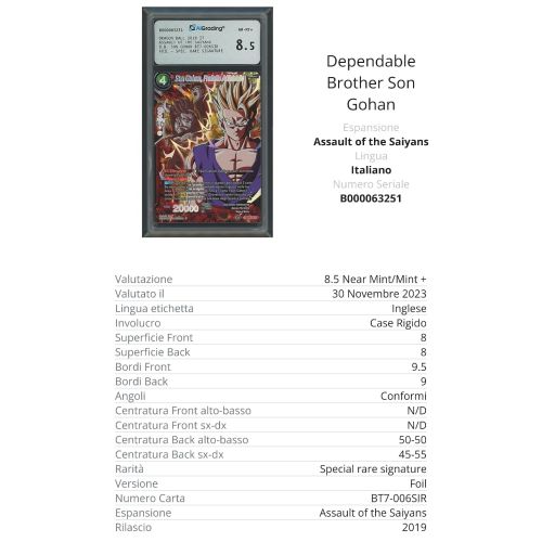 Dragon Ball Super Assault of the Saiyans Son Gohan, Fratello Affidabile AiGrading Voto 8,5