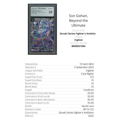 Dragonball Super Card Game - SON GOHAN, BEYOND THE ULTIMATE - Secret Rare AiGrading Voto 10