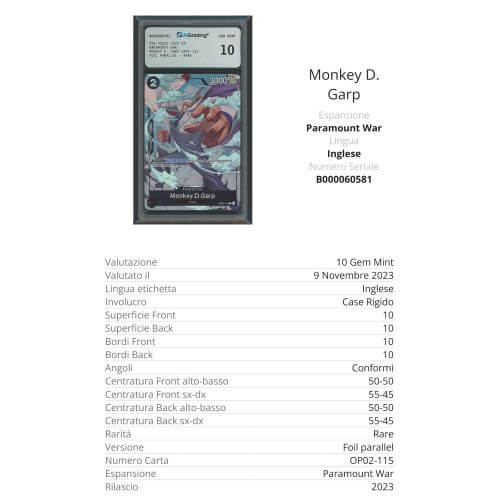 One Piece Monkey.D.Garp OP02-115 V.2 Alternate Art AiGrading Voto 10