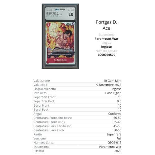 One Piece Portgas.D.Ace OP02-013 V.1 Super Rara AiGrading Voto 10