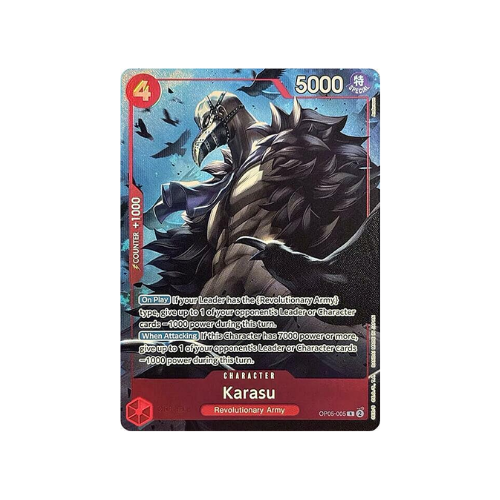 Carta singola da collezione del Gioco di Carte Collezionabili One Piece Card Game. Karasu é una Promo appartenente alla Premium Card Collection - Best Selection Vol. 2, stampata in lingua Inglese. Ideale per collezionisti e appassionati